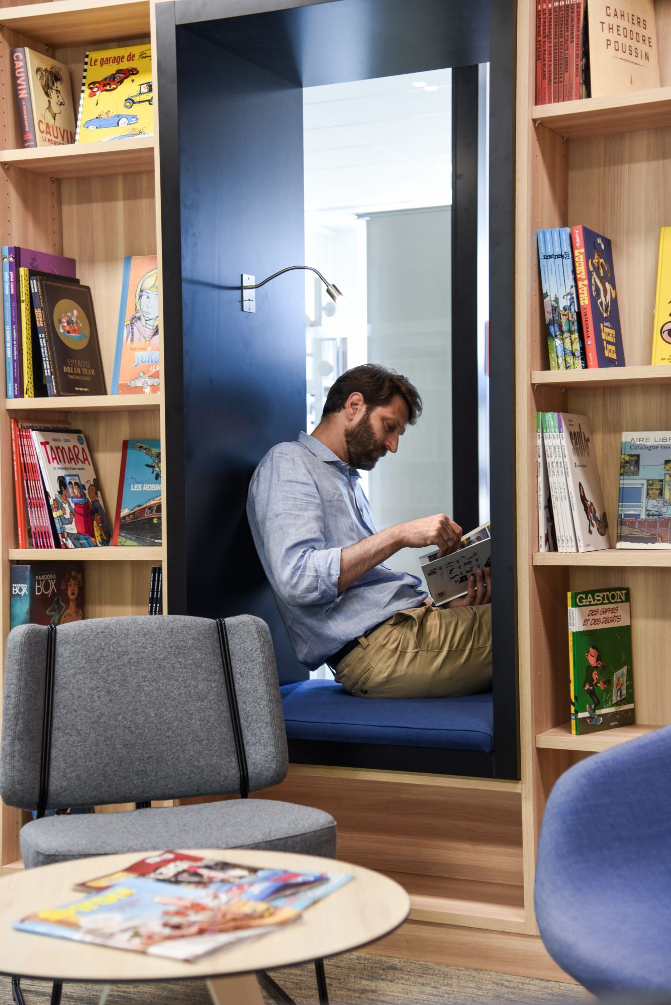 Un aménagement reflétant l’ADN des différentes maisons et mettant en avant la diversité de sa production : livres, BD, presse, audiovisuel