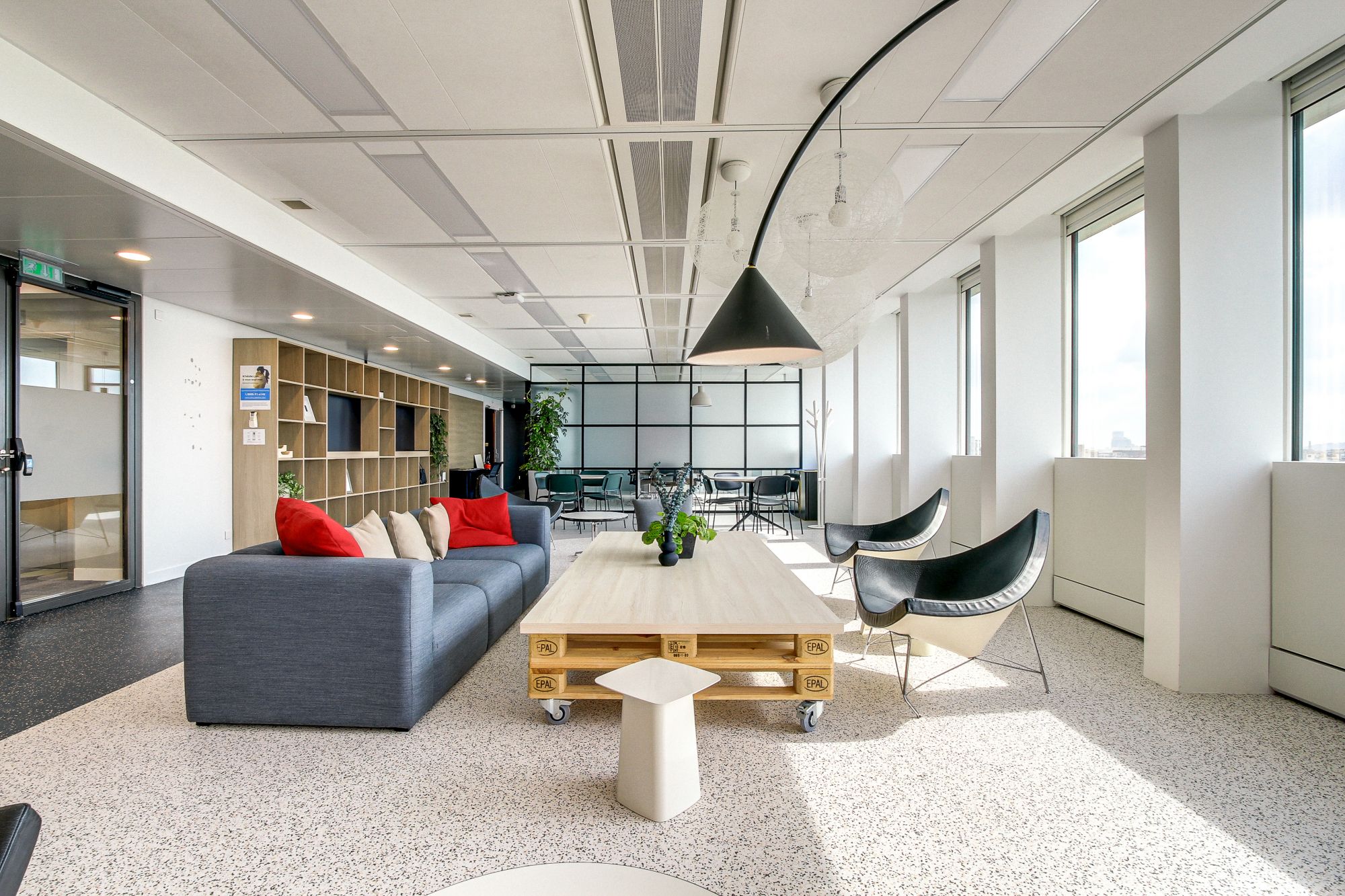 Le compartiment Sud est aménagé avec des grands espaces informels constitués de nombreux agencements ainsi que des salles de réunion et le studio photo - avec une vue complète sur le Grand Paris !