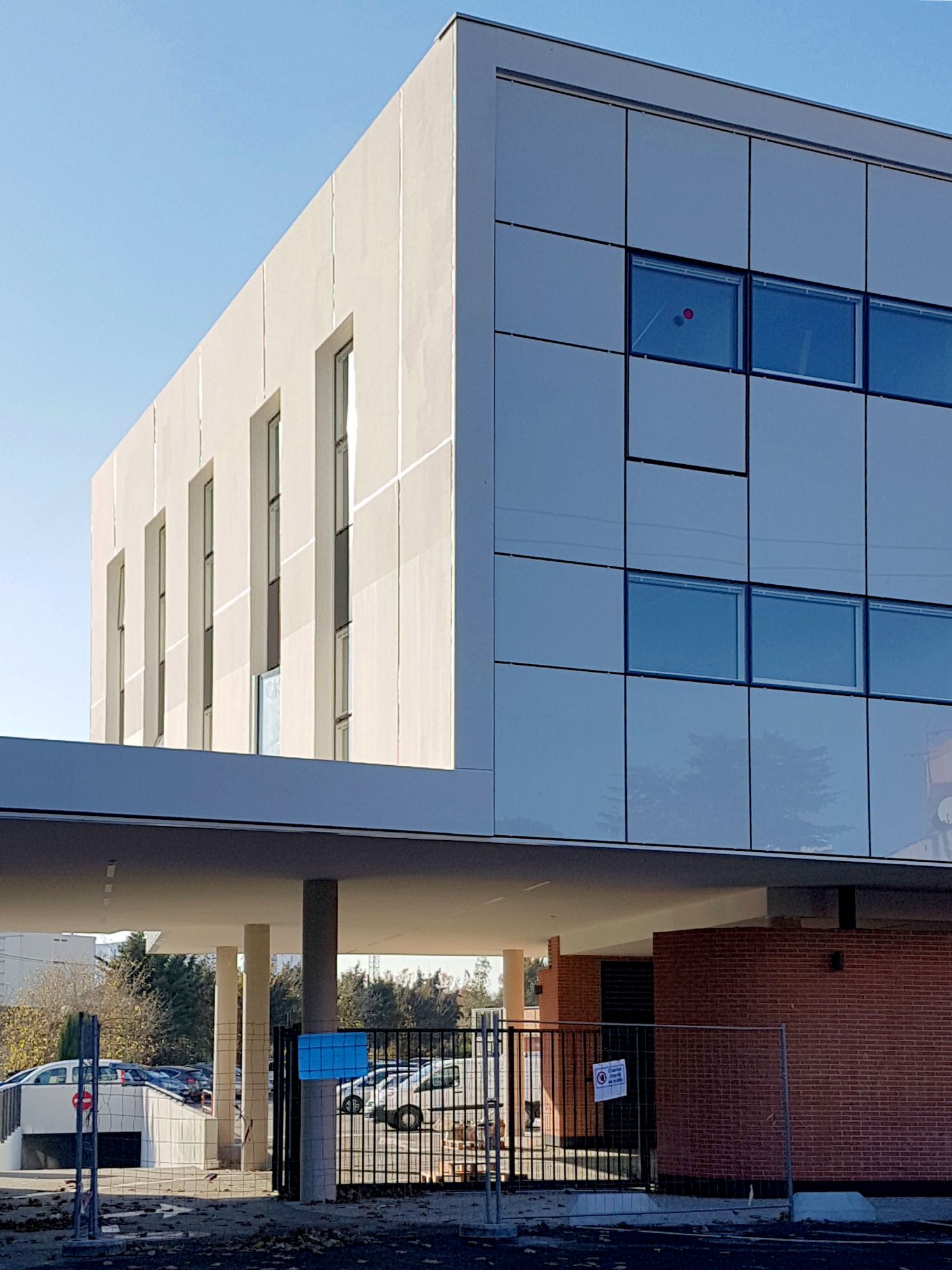 Le projet consiste en la construction d'un immeuble de bureaux pour le compte et sur le site de l’agence de l’Eau Adour Garonne rue St Roch. L’implantation se fait en continu des alignements des bâtiments existants et ainsi assure la continuité bâtie sur la rue. Au rez-de-chaussée, un mur en brique ondule formant soubassement, les deux niveaux supérieurs sont plus rigoureux dans leur géométrie avec des brises soleils en verre bleu à l’image de la fonction abritée.