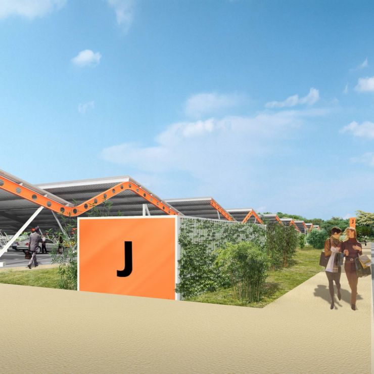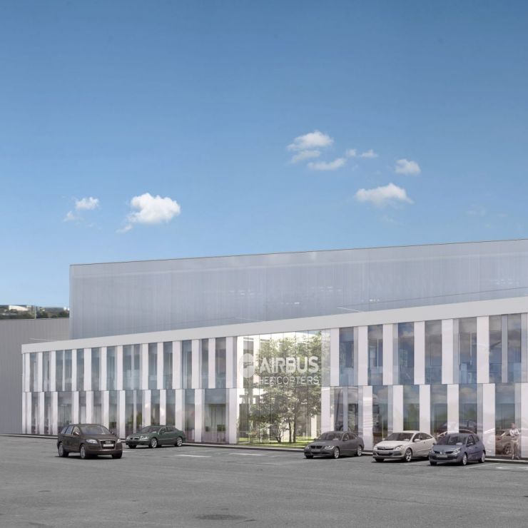 Autour de la chaine de production se greffent en étoile les autres éléments du programme : un bâtiment d’accueil, un centre de formation, un laboratoire de recherche, des bureaux administratifs et ceux de la Direction sur 10 000 m², des salles de réunion, un restaurant-cafétéria de 300 couverts et des zones logistiques. Les bâtiments tertiaires sont éloignés des pistes et positionnées de manière indépendante pour être protégés des nuisances sonores et pour des raisons de sécurité incendie. La position du bâtiment de Direction, sur l’axe des entrées lui confère une double visibilité.