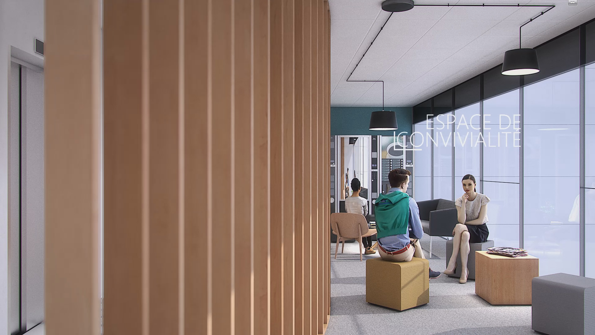 Le projet se présente en deux volumes principaux compacts et de forme géométrique rectangulaire simple, reliés par une passerelle habitée intégrant le hall d’accueil au rez-de-chaussée et des espaces de convivialité dans les étages.