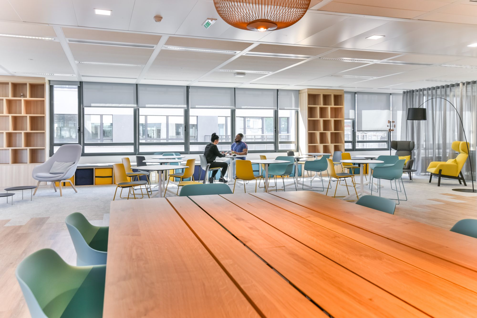 Nos équipes ont conçu et réalisé un aménagement de bureaux en flex-office et un grand espace de convivialité.