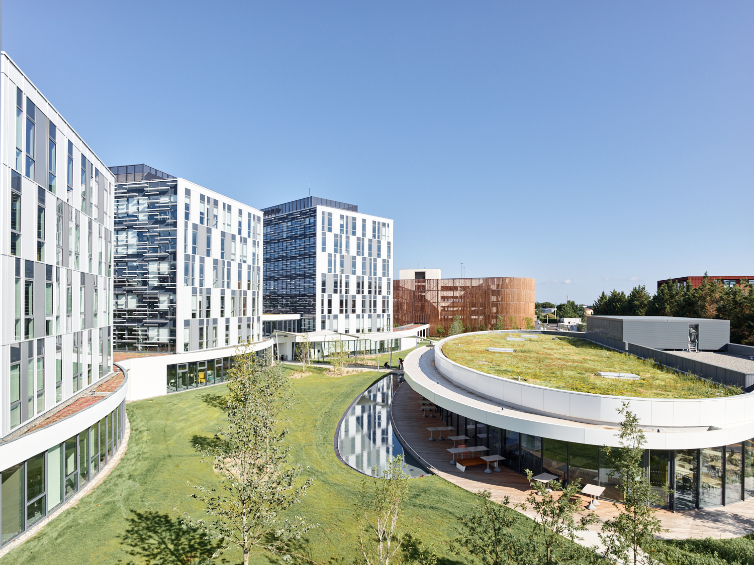 Le projet consiste en un ensemble de bureaux composé de 4 bâtiments de hauteurs dégressives, destiné à accueillir 1 250 collaborateurs dans la commune de Balma. La disposition permet de répondre à l’évolution des besoins de l’entreprise, une galerie de liaison courbe s’offre aux orientations, les plateaux favorisent les échanges. Sur un très grand terrain, s’inscrit ce lieu de travail et de partage qui apporte une sensation « d’ailleurs » dans un coin de campagne où la nature recréée fera vivre et respirer le campus.