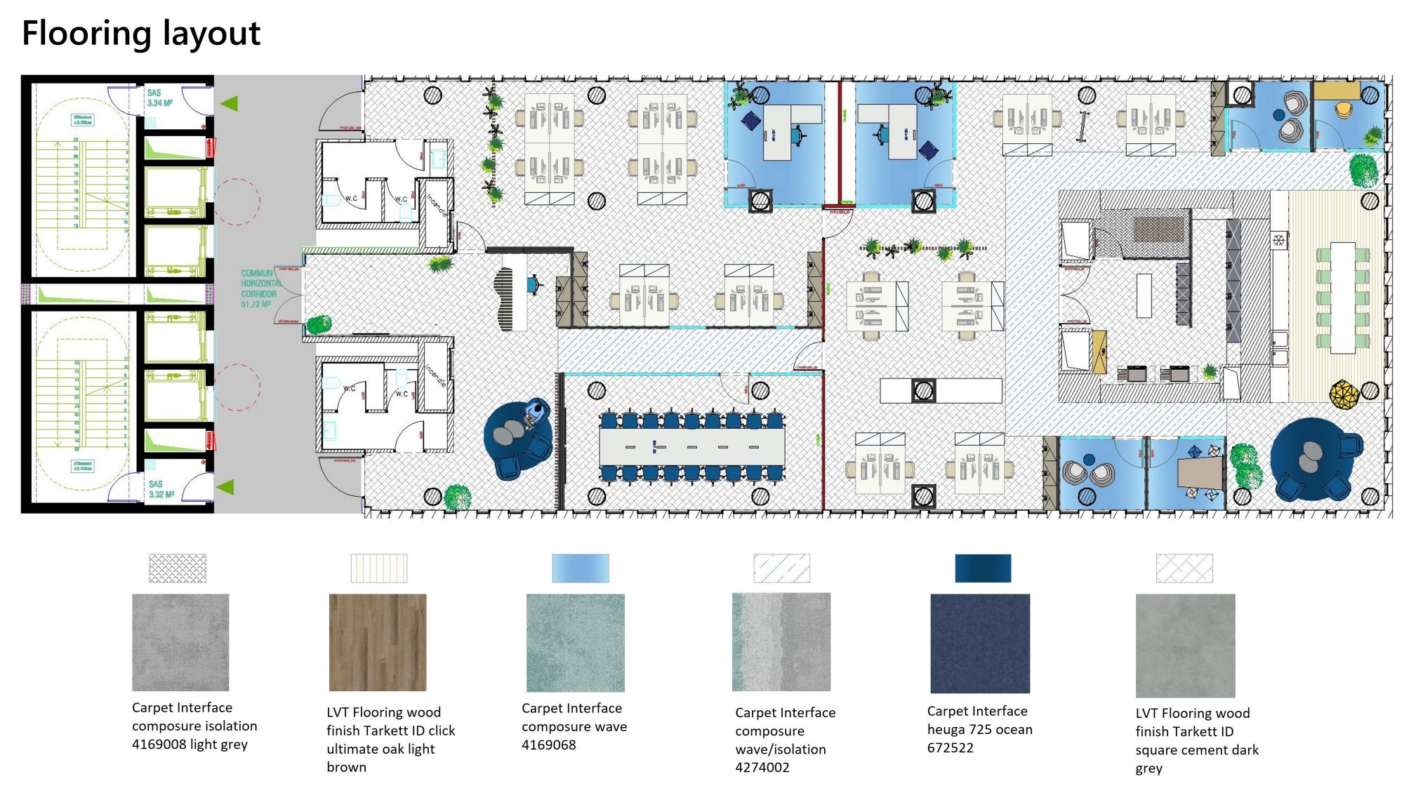 La palette de couleurs s'inspire de l'ADN général de DLA Piper traduit dans leurs bureaux, apportant transparence, confort et une ambiance smart. Les différentes textures proposées sont une façon d'imiter les barrières de façade extérieures et une solution pour apporter l'aspect culturel à travers le design.