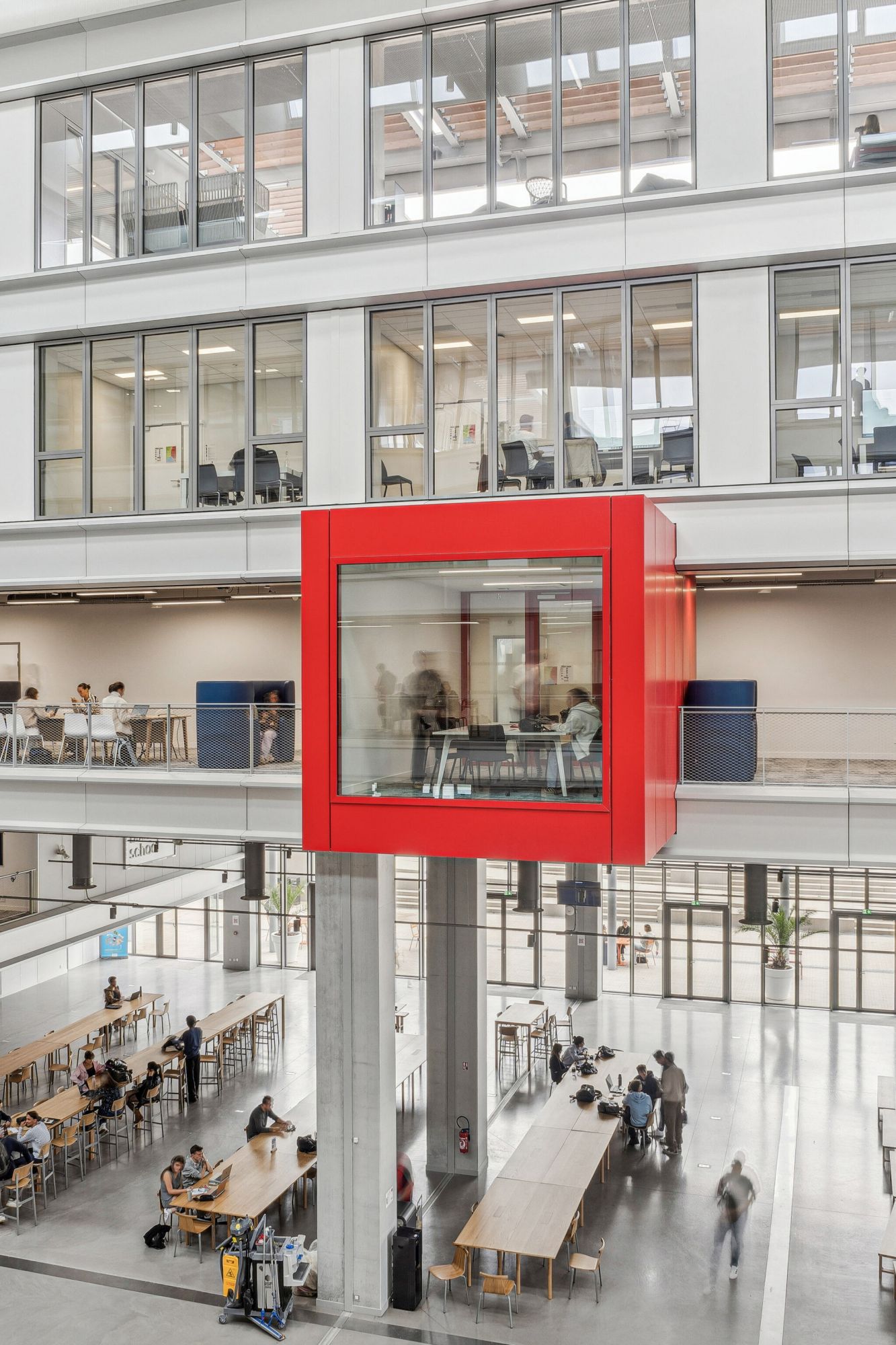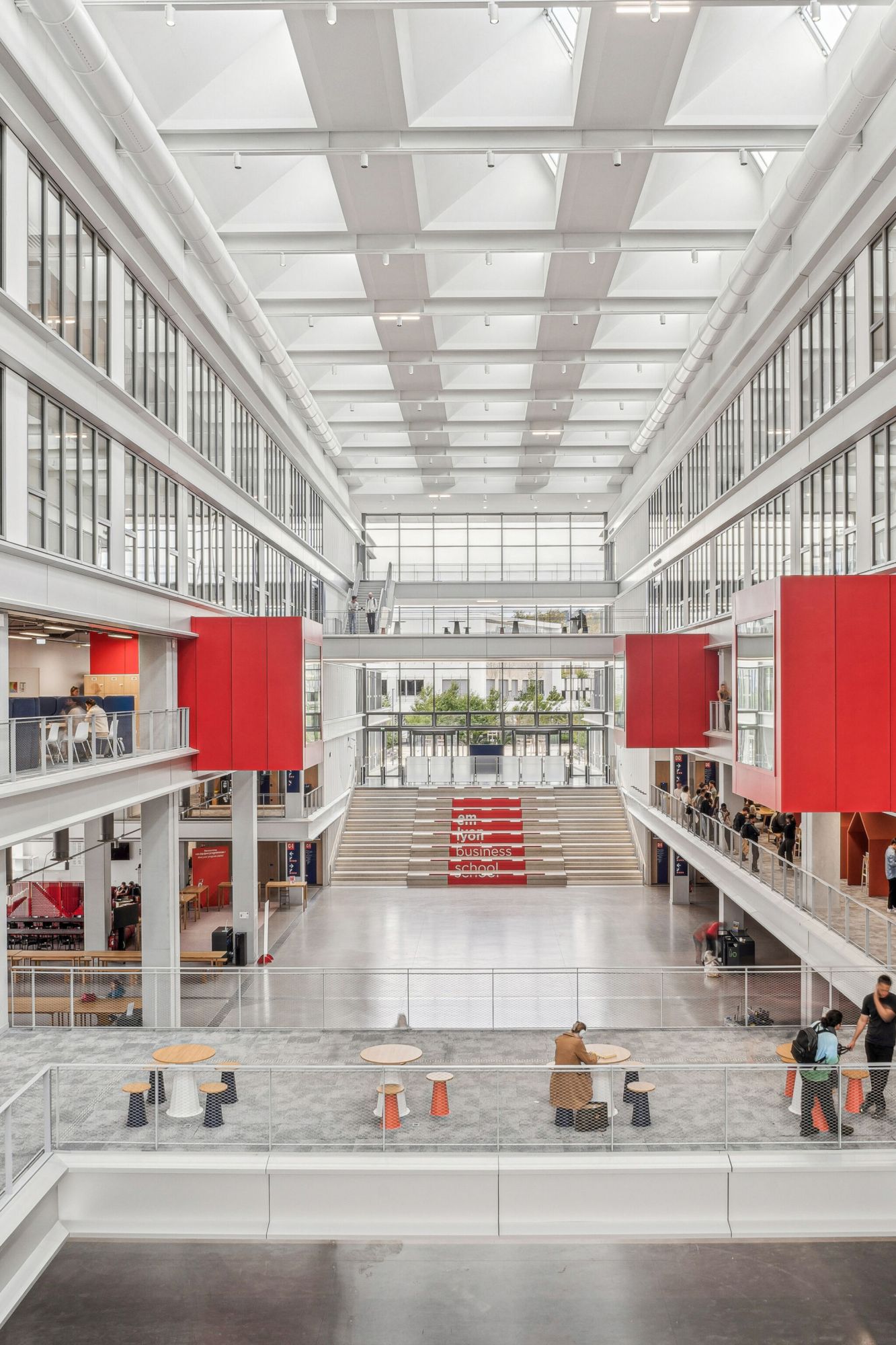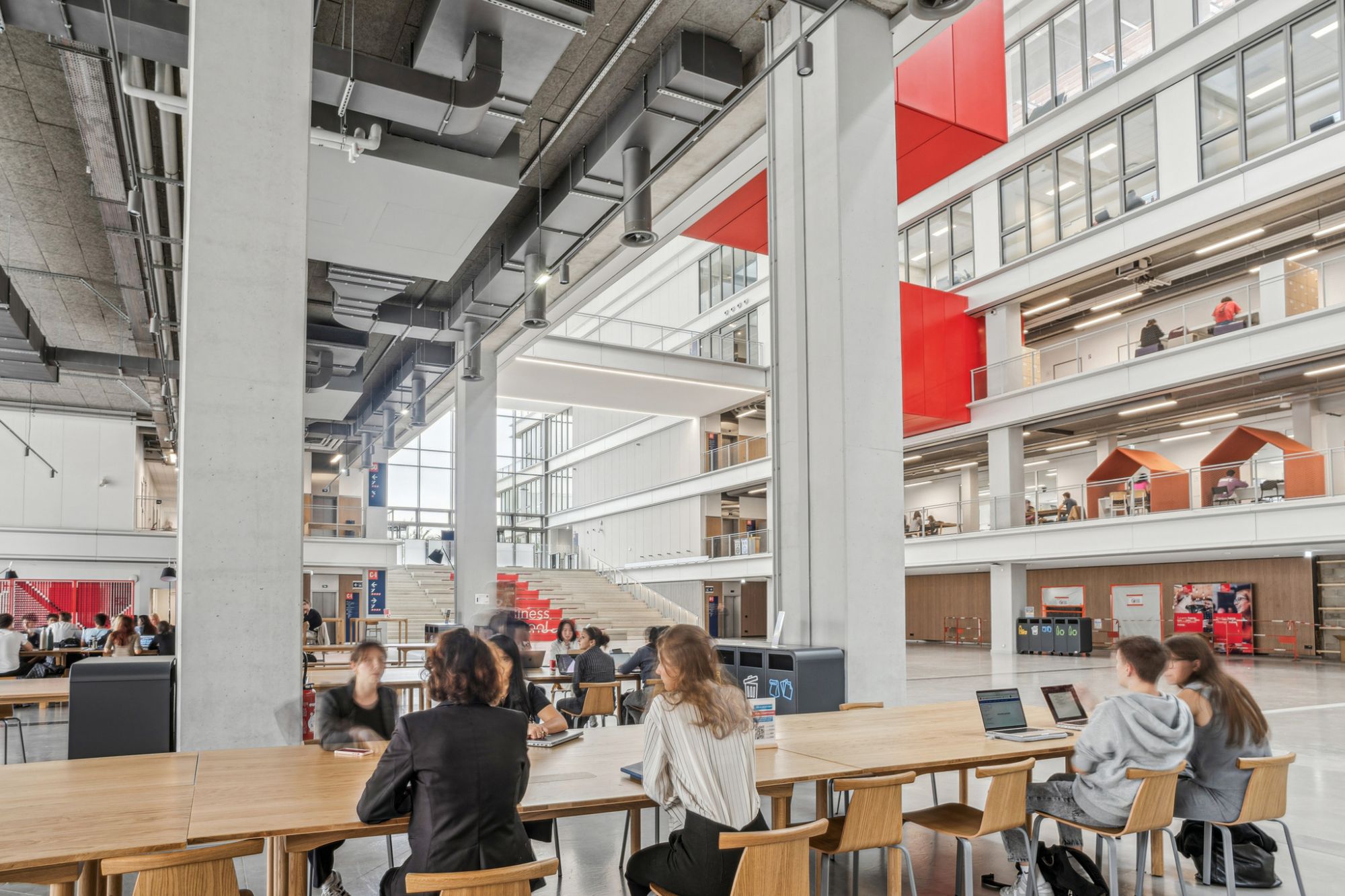 Ce grand hall, également surnommé le "cœur battant", offre aux étudiants un espace de rencontre convivial, favorisant les échanges et le partage