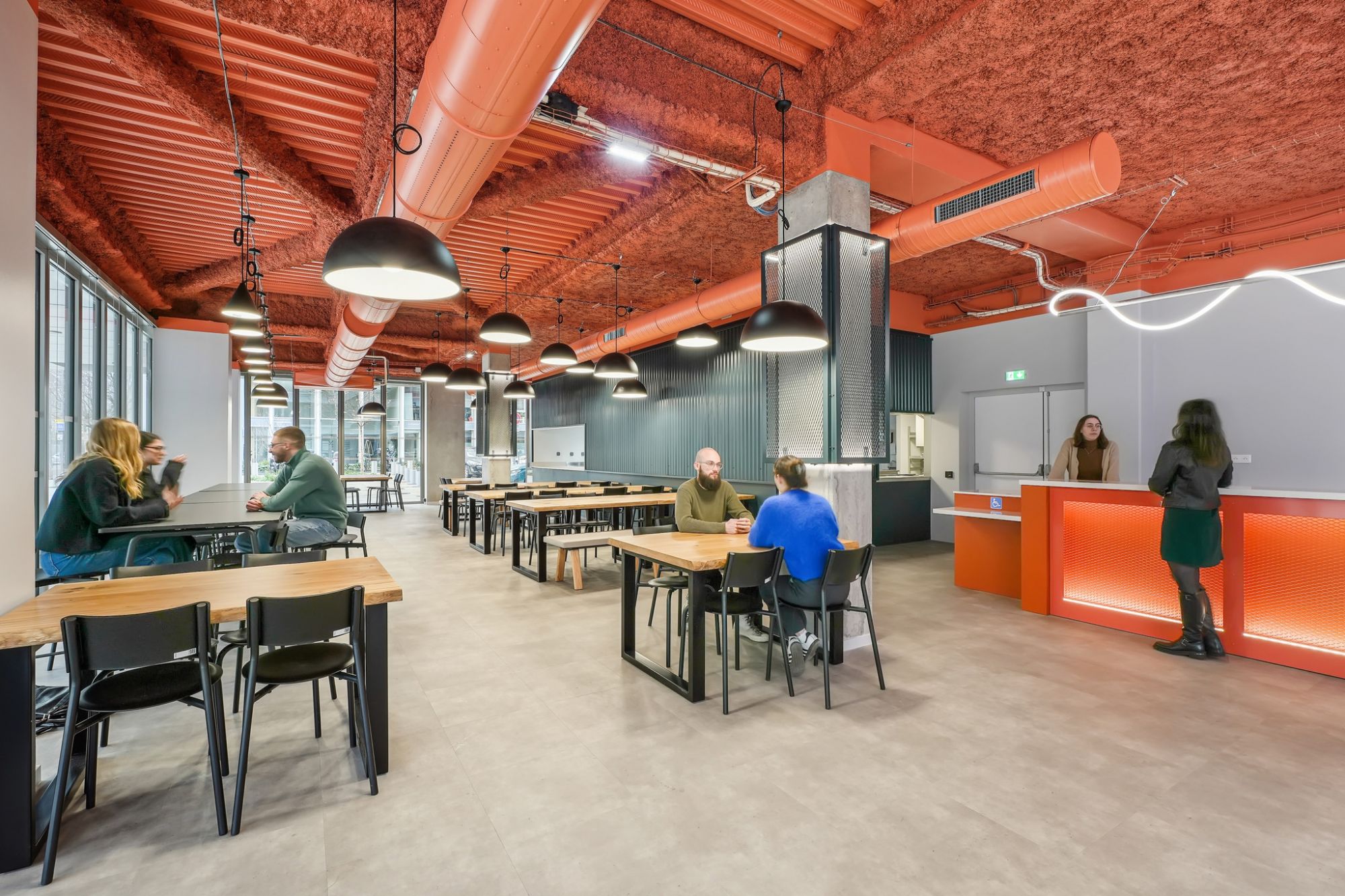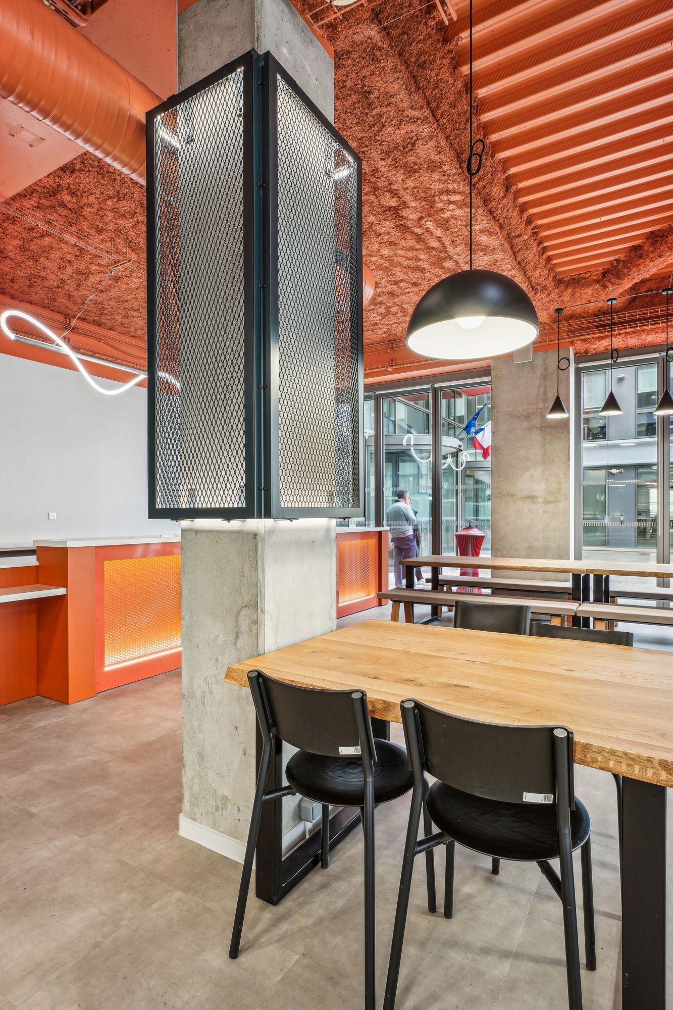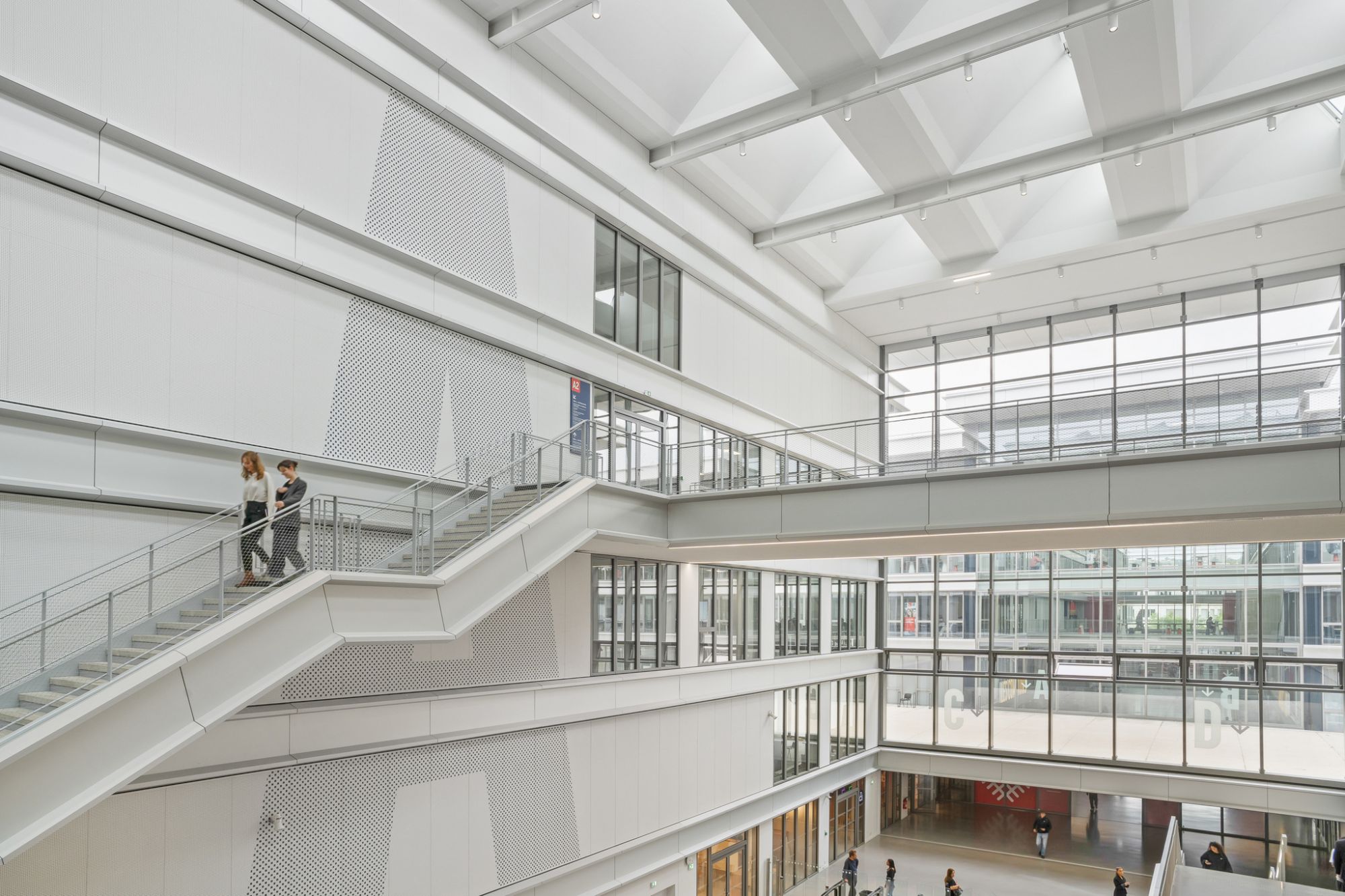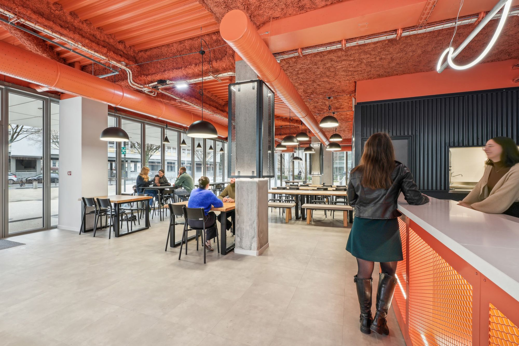 Ce grand hall, également surnommé le "cœur battant", offre aux étudiants un espace de rencontre convivial, favorisant les échanges et le partage