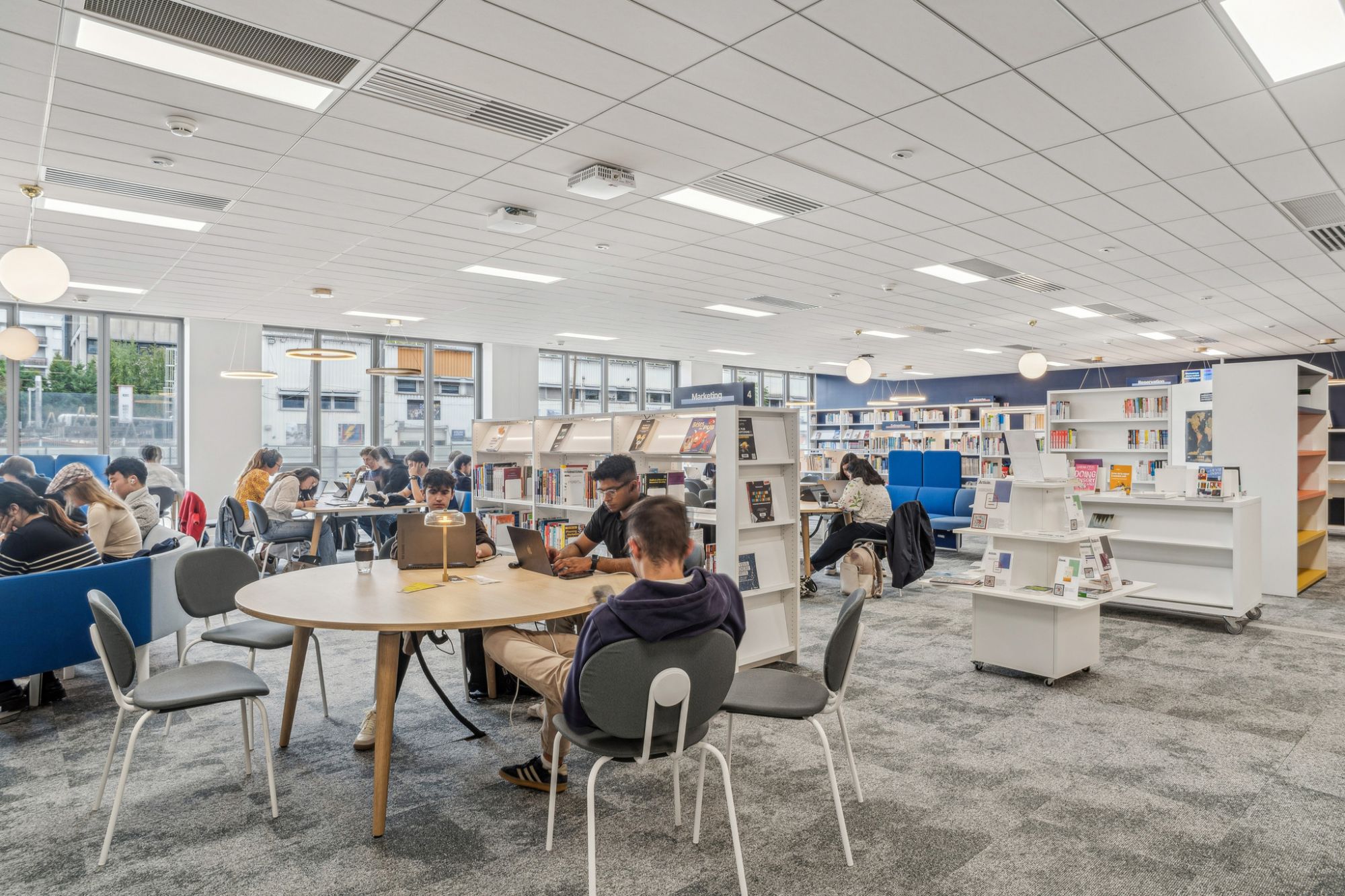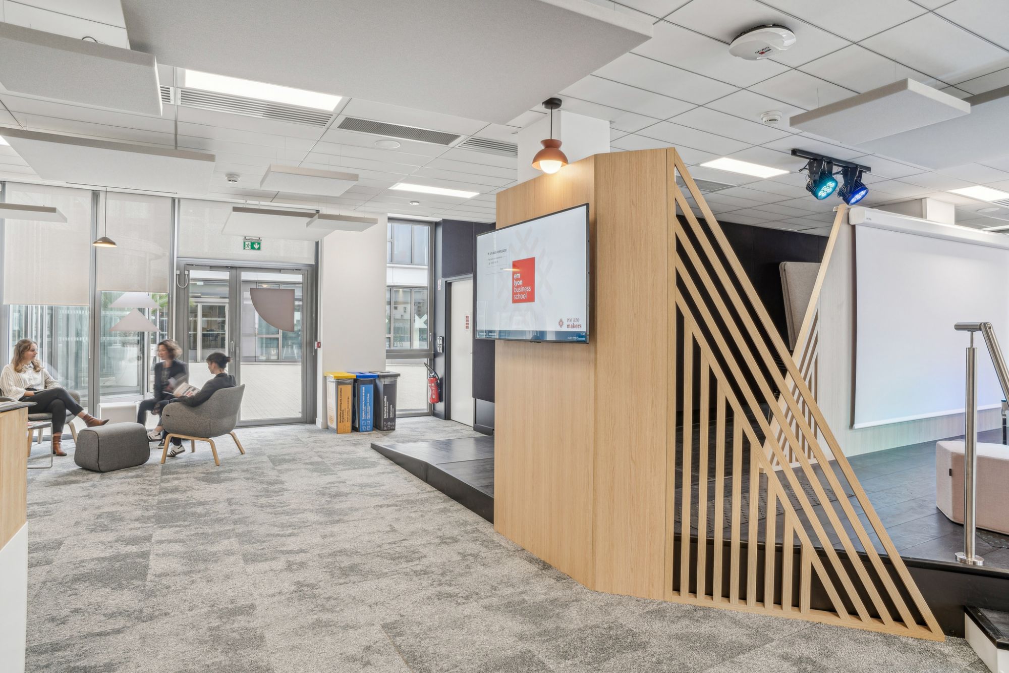Nos équipes ont accompagné la célèbre école de management lyonnaise dans l'aménagement intérieur de ses nouveaux espaces ressources, pédagogiques et spécifiques comme les espaces de direction et d'encadrement, la Bibliothèque et le village associatif.