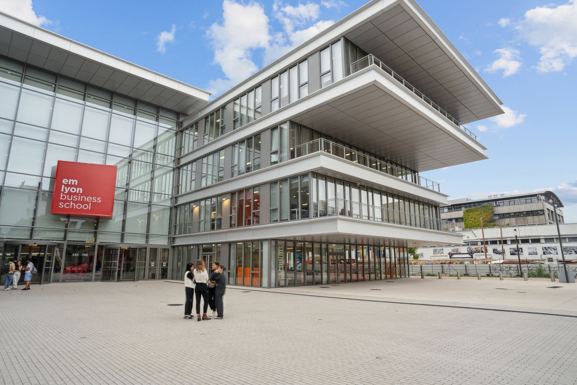 Implantée auparavant à Ecully, l'école emlyon a déménagé sur le site des anciennes usines Nexans, au cœur du 7ème arrondissement de Lyon, dans l'ancien quartier indutriel Gerland.