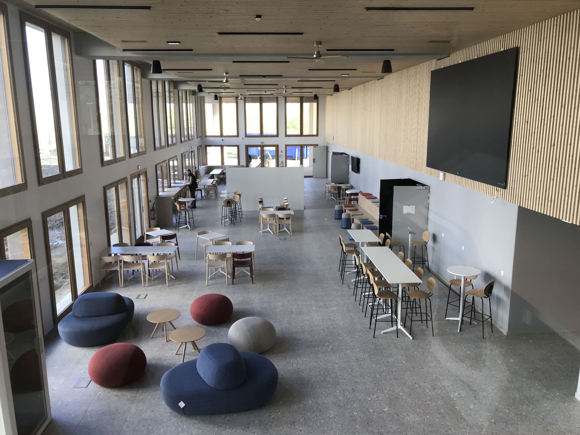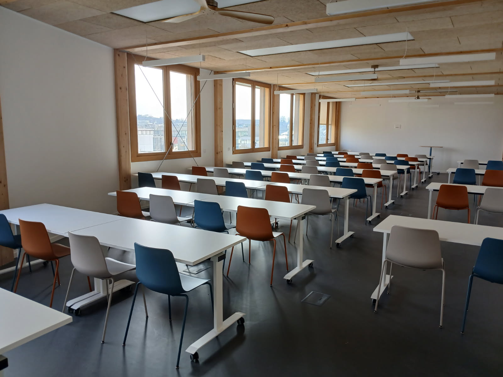 Le projet intègre également une mission de conception d’aménagements intérieurs et de choix de mobilier pour les espaces pédagogiques, collaboratifs et de convivialité : salles de cours, amphithéâtre, bibliothèque, zones de travail, hall et rooftop.