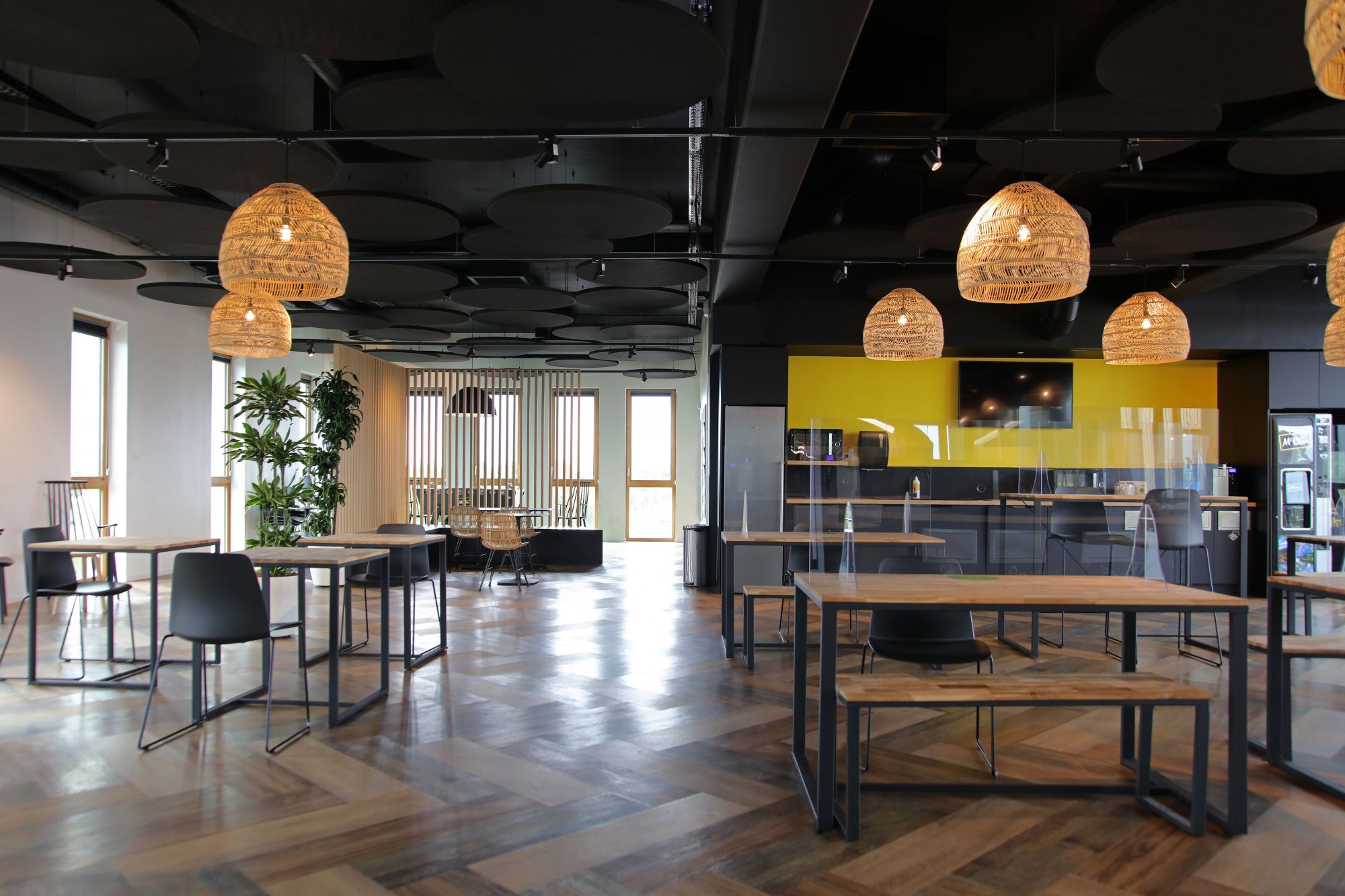 Les ambiances ont été réalisées en co-création avec les équipes de McCain qui souhaitaient un lieu imprégné de la culture d’entreprise, avec une prépondérance de bois et végétal, et un calepinage du sol assez marqué pour différencier les typologies d’espaces.