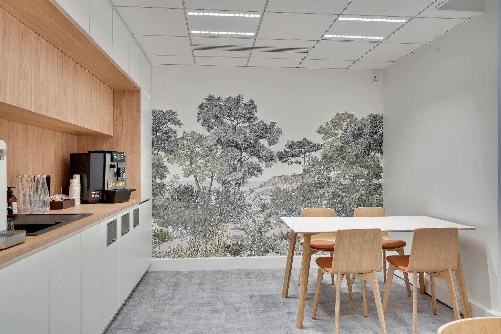 C'est pourquoi certains espaces sont modulables, en particulier le Workcafé, pièce maîtresse qui permet de multiples usages, allant de la détente à l'événement, en passant par la réunion, le tout étant optimisé par un vitrage Priva-Lite, un verre à occultation commandée.