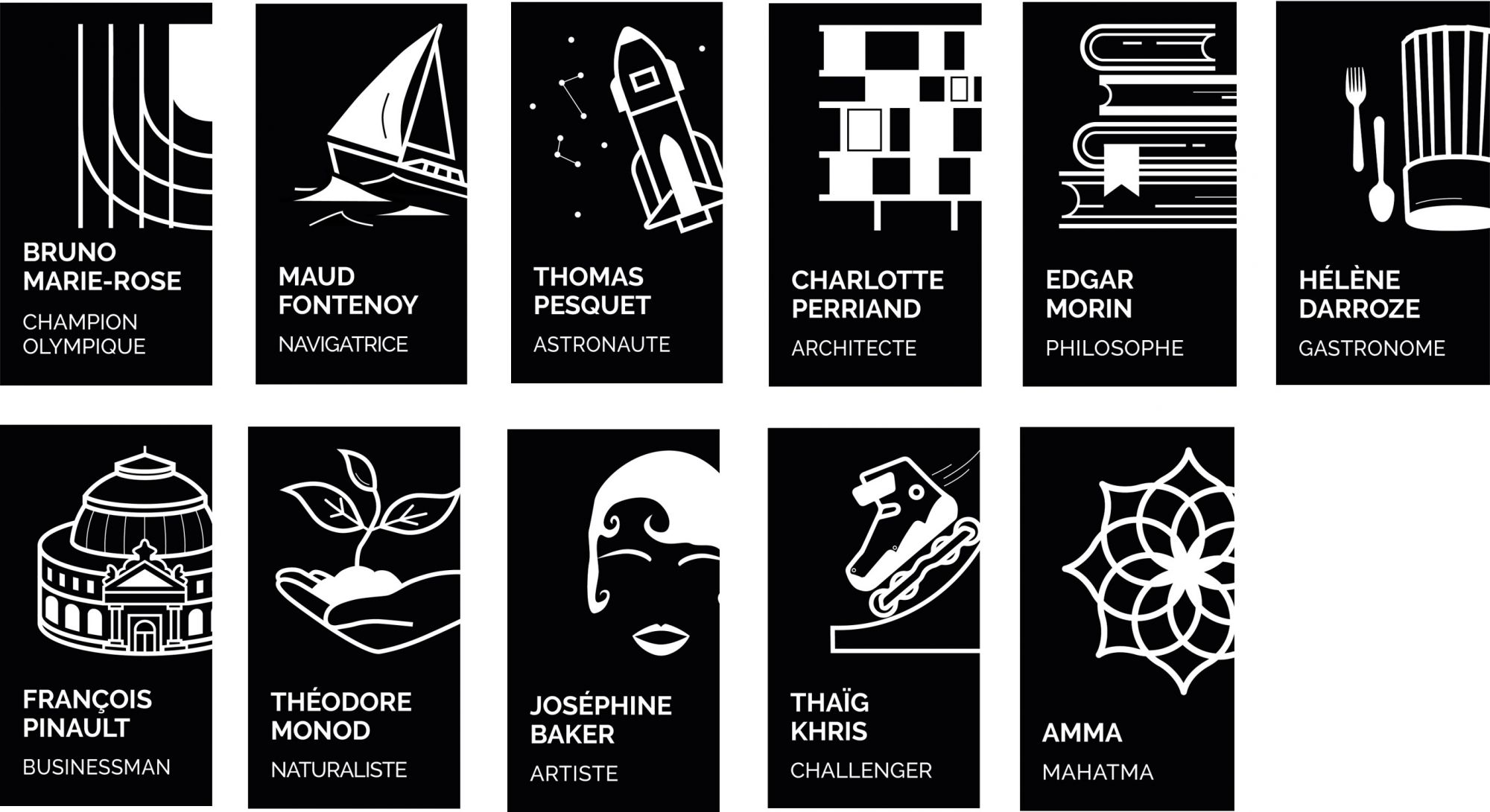 Les bureaux et ambiances ont été associés à des personnages inspirants, décidés collectivement par les collaborateurs de Nexmove. Ces choix ont été traduits dans la décoration murale via des tableaux, ainsi que dans la signalétique :