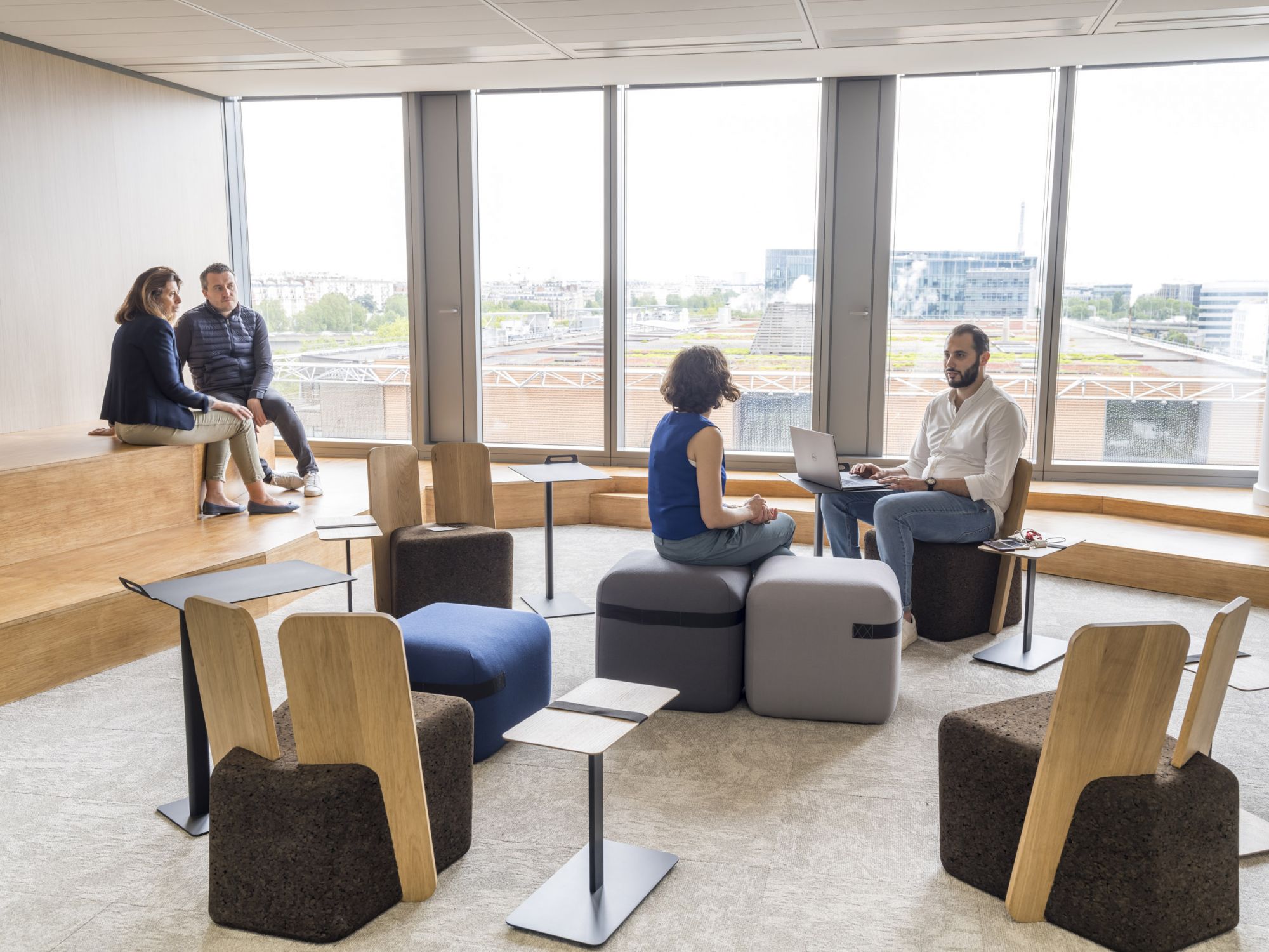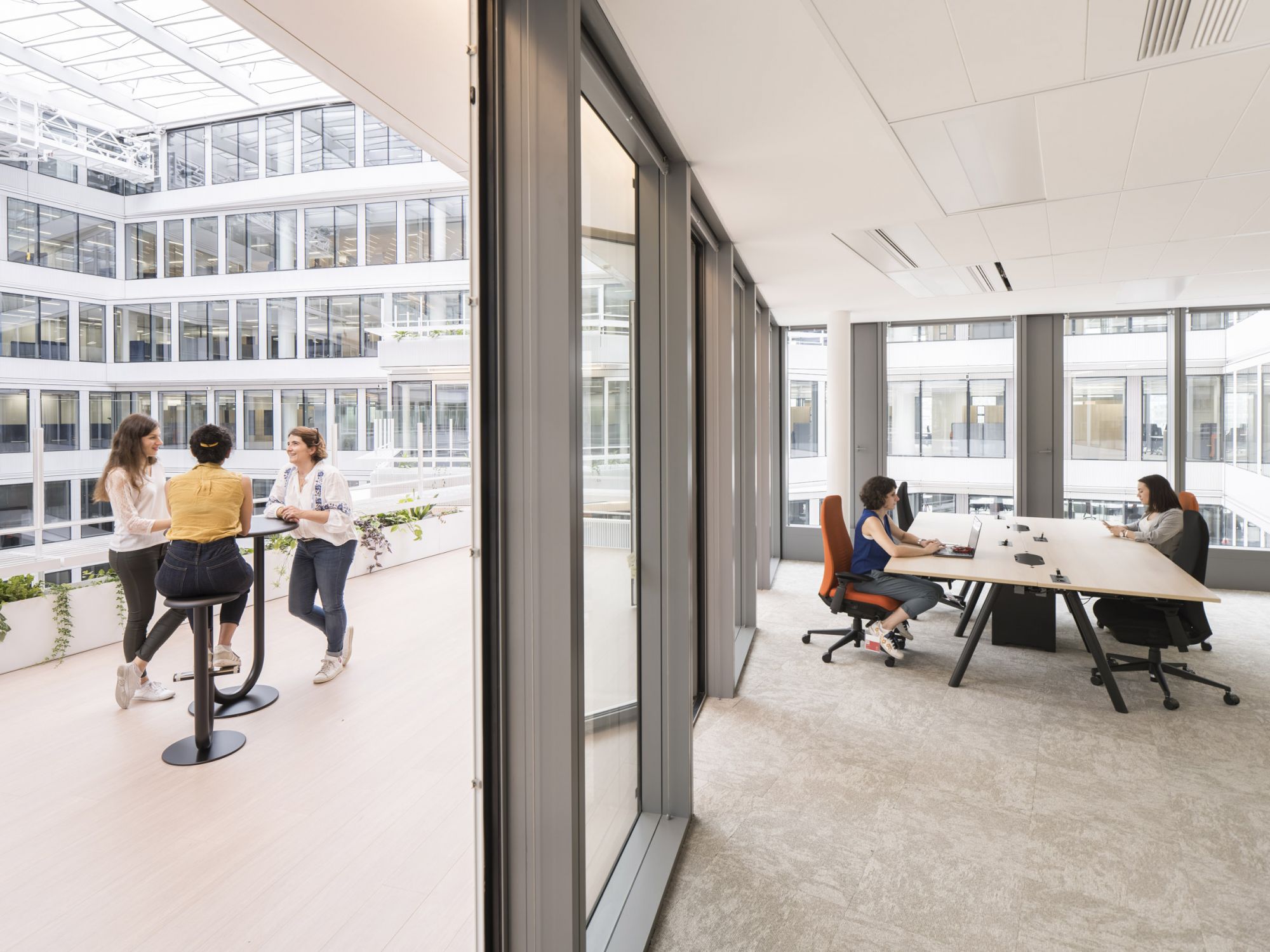 Les terrasses intérieures sont des prolongements des territoires d'équipe et permettent de se retrouver pour échanger