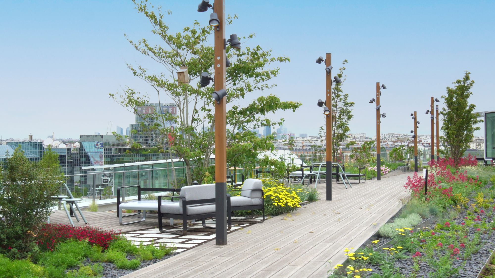 Un immense toit-terrasse de 3 500 m² permet aux salariés de se reposer, se promener, ou même de travailler à l'air libre