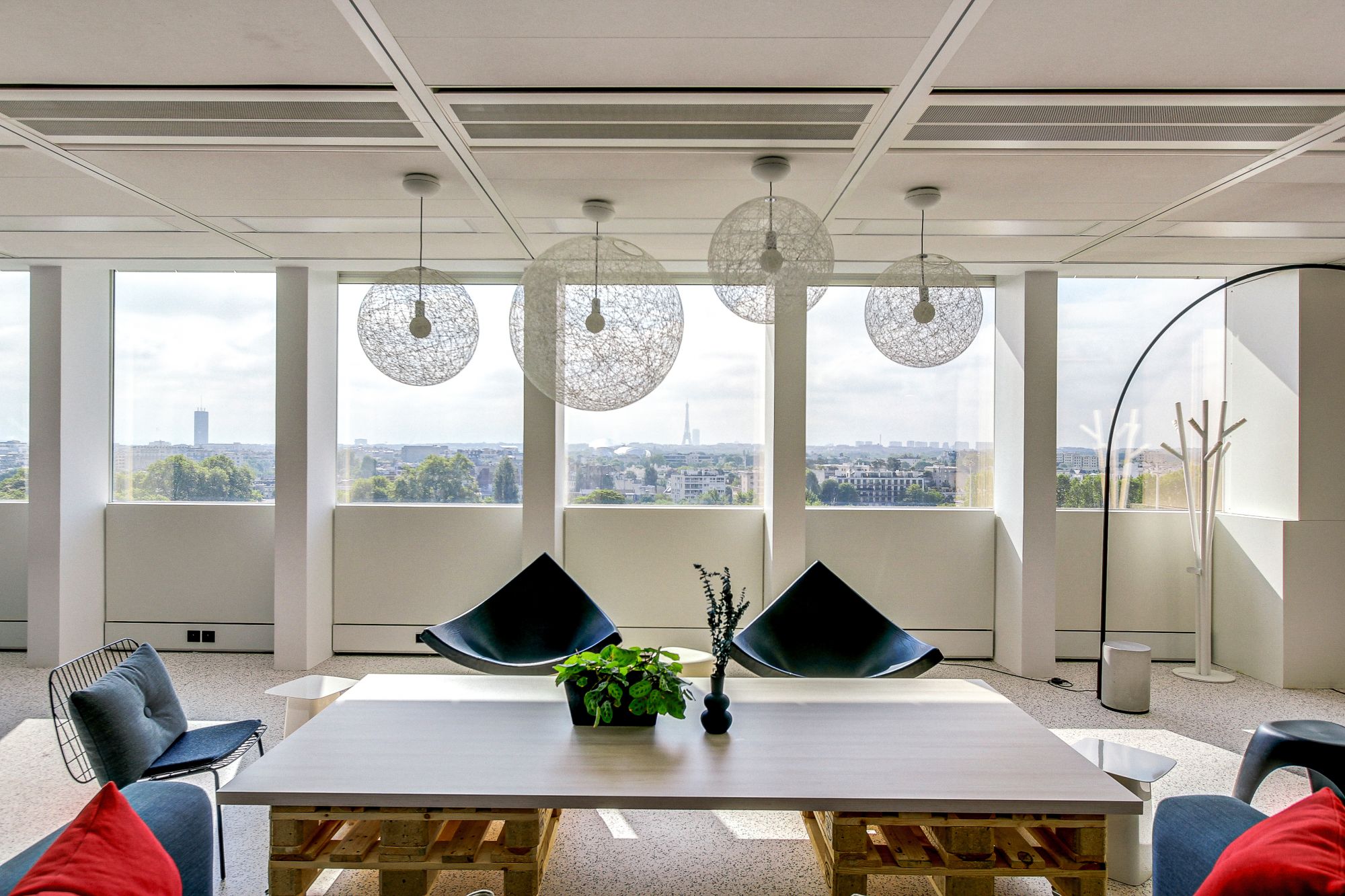 Le compartiment Sud est aménagé avec des grands espaces informels constitués de nombreux agencements ainsi que des salles de réunion et le studio photo - avec une vue complète sur le Grand Paris !